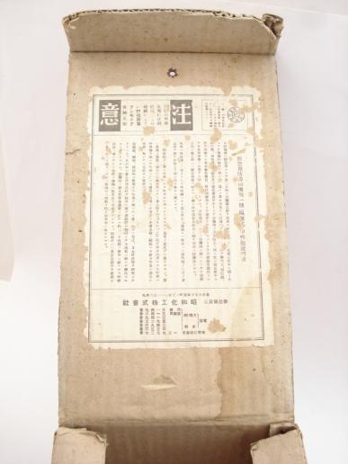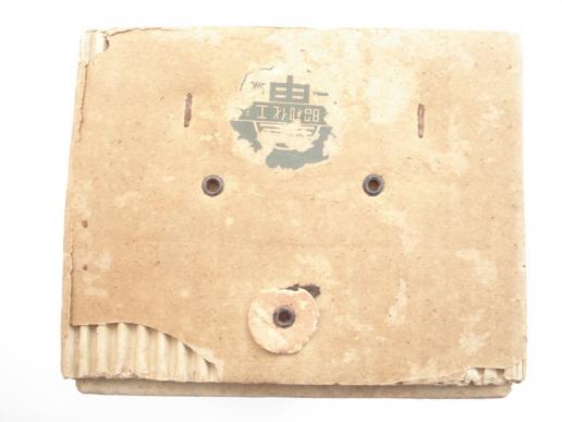 WW2 Japanese Gas Mask Box Cardboard box for Japanese box type respirator, dating from the pre WW2 period. Paper label to the front and to the inner flap. An unusual item.