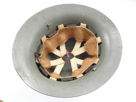 WW2 British 'Zuckerman' civil defence helmet, in clean, tidy condition and of a large size 7 1/4. Makers details to both the shell and liner, both 1941 Dated. Civil engineers label pasted to the shell under the liner.