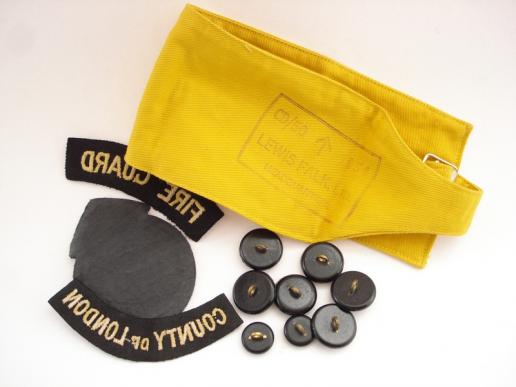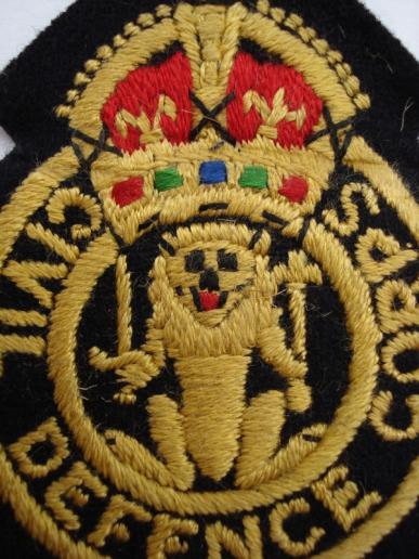 British Post-War Civil Defence Items Grouping of post WW2 civil defence corps items- Brassard, cloth badges & buttons. All in unissued condition.