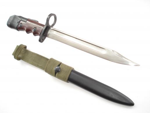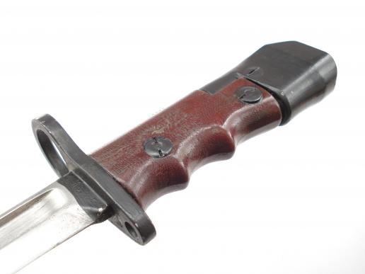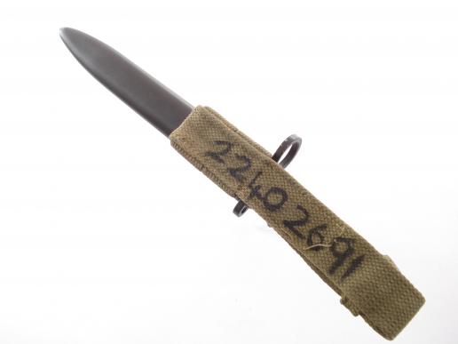 The No7 was originally intended for issue with the MkV Sten SMG, but was also used with the No.4 Lee Enfield rifle. It was issued as a dress bayonet until fairly recently.