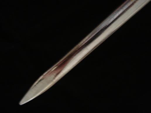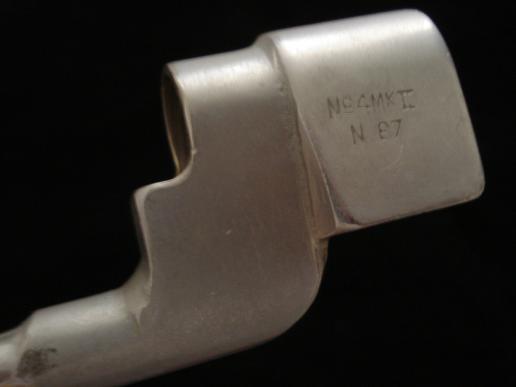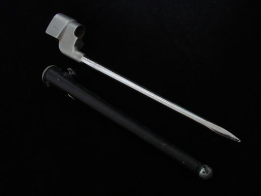 British Singer production No4 MkII spike bayonet with polished blade & 'Satin' finished socket. Matching hand numbering to bayonet & scabbard.