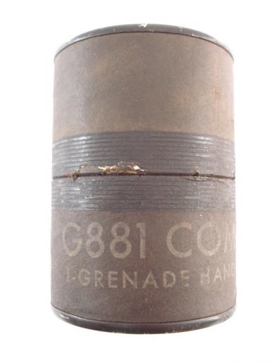 U.S Vietnam War Era M67 Grenade Container Pressed card & tin container for the U.S M67 fragmentation grenade, 1972/3 dated. good condition.