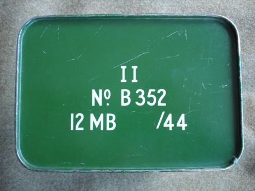 WW2 British Delay Capsule Tin, 1944 Dated Heavy gauge tin for delay capsule (No U11) made by metal box Co in 1944. Excellent condition with 98% finish/stencilling