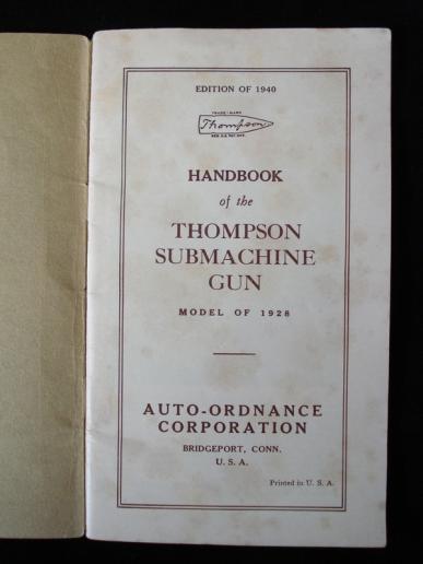 Scarce original copy of the Thompson SMG handbook (the model 1928) 1940, probably the edition supplied with lend- lease weapons.