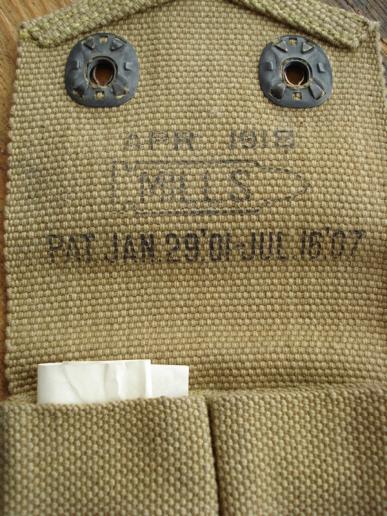 1918 dated M1912 Mills .45 pistol magazine pouch, with original paper care instruction sheet. Issued & used in both WW1 & WW2