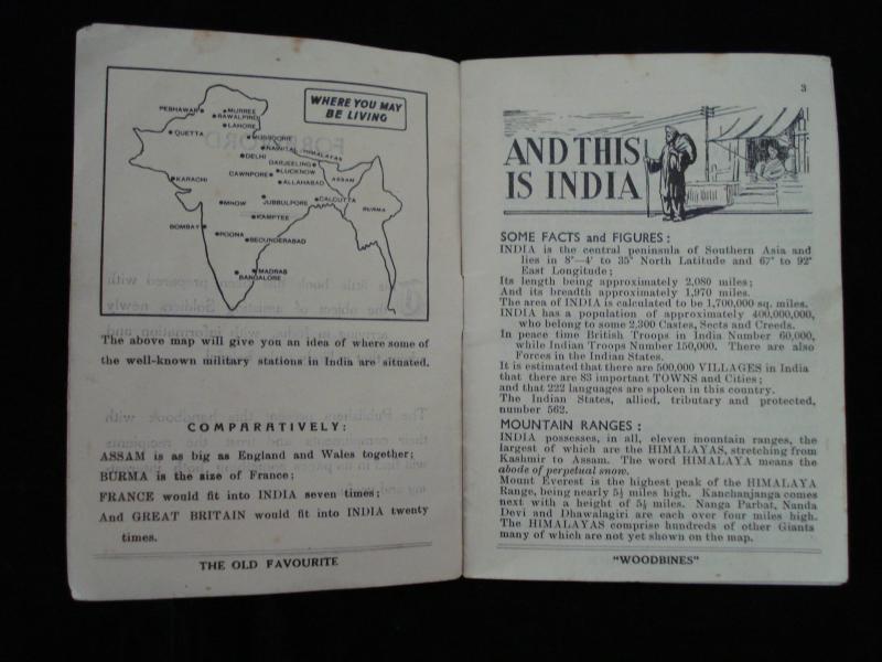 Interesting little booklet full of now mildly amusing hints and tips for service in India. 1942 dated.