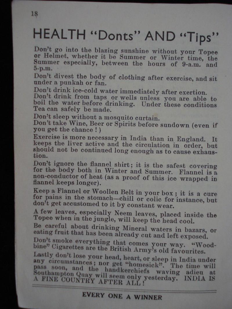 W.D & H.O Wills Wild Woodbine useful hints for soldiers arriving in India.