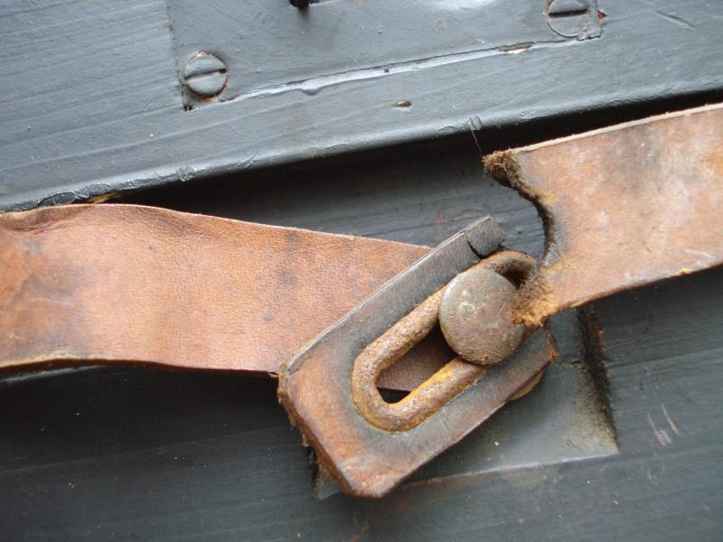 Very nice empty parts & ignition items for the Smi-35 'Bouncing Betty' mine. Complete with all its inner compartments & pull up tapes. Early type leather handle fitted but this has failed (see pics) Great original markings to the lid.