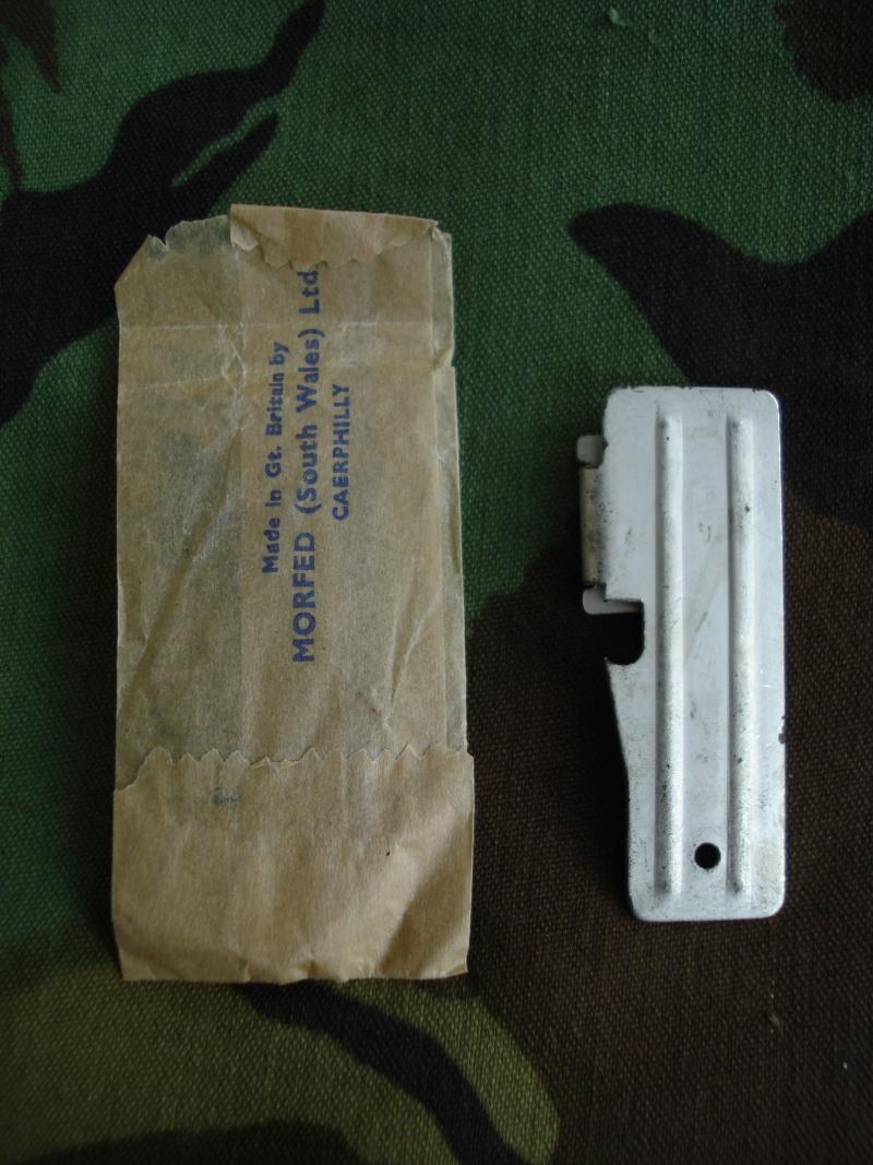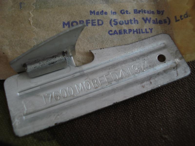 British Ration Pack Can Opener In Packet 1974 dated 'Morfed' baby can opener from ration pack, unused in original wrapper. U.K Post Free