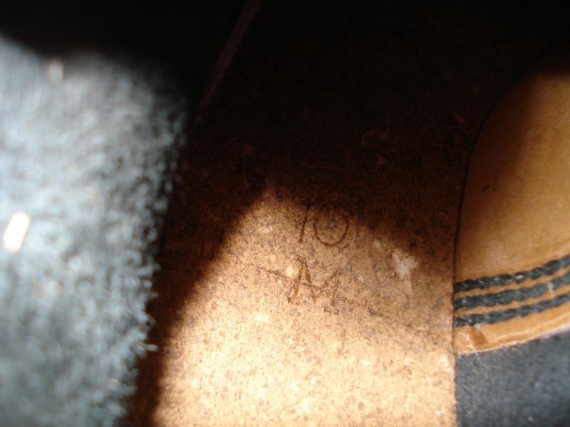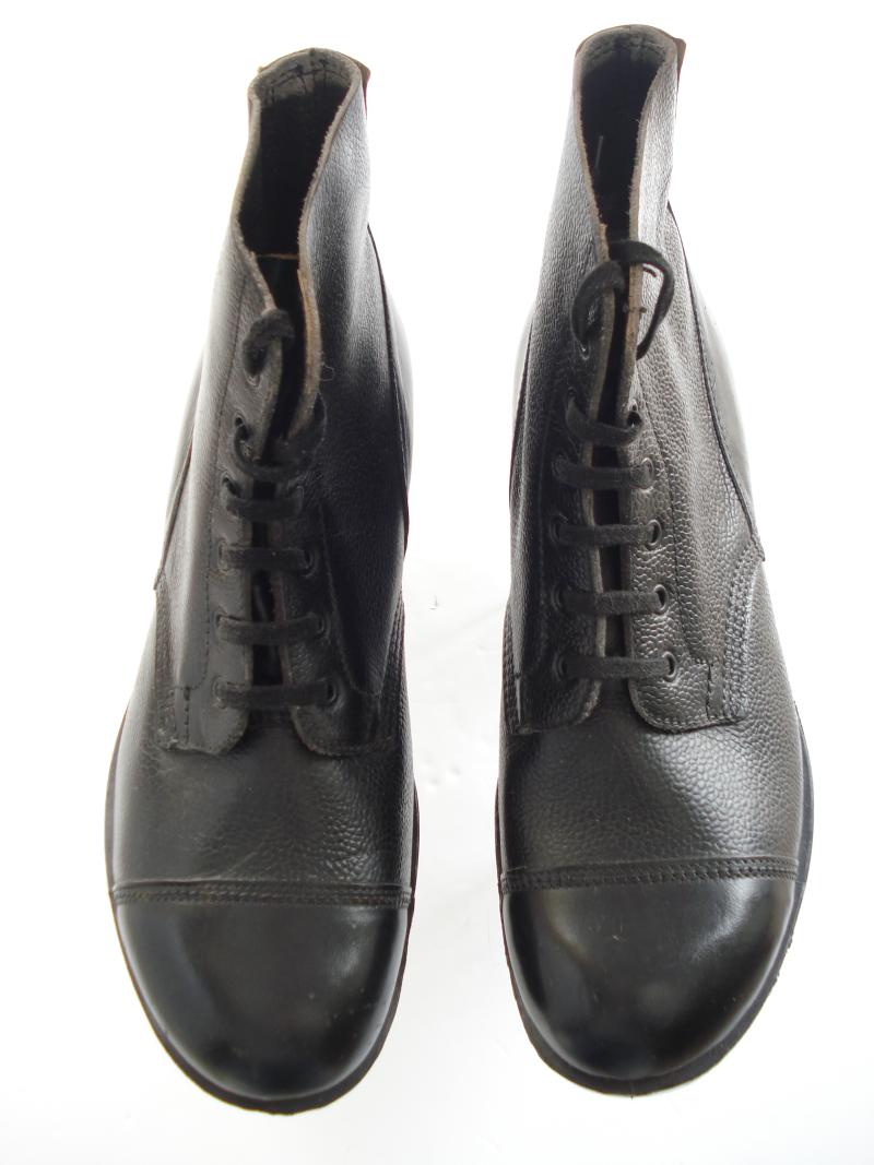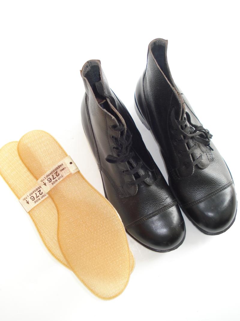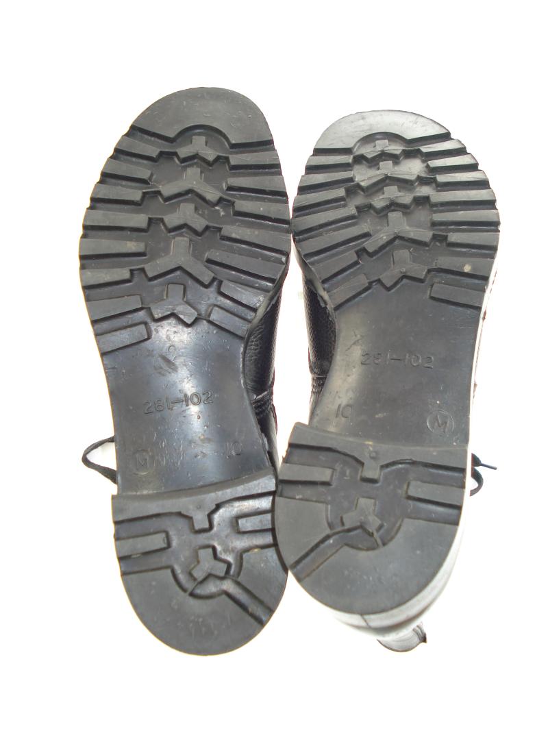 A new, old stock pair of British issue DMS boots in size 10 medium. Faint date of 1980 impressed on the inside, along with size info.