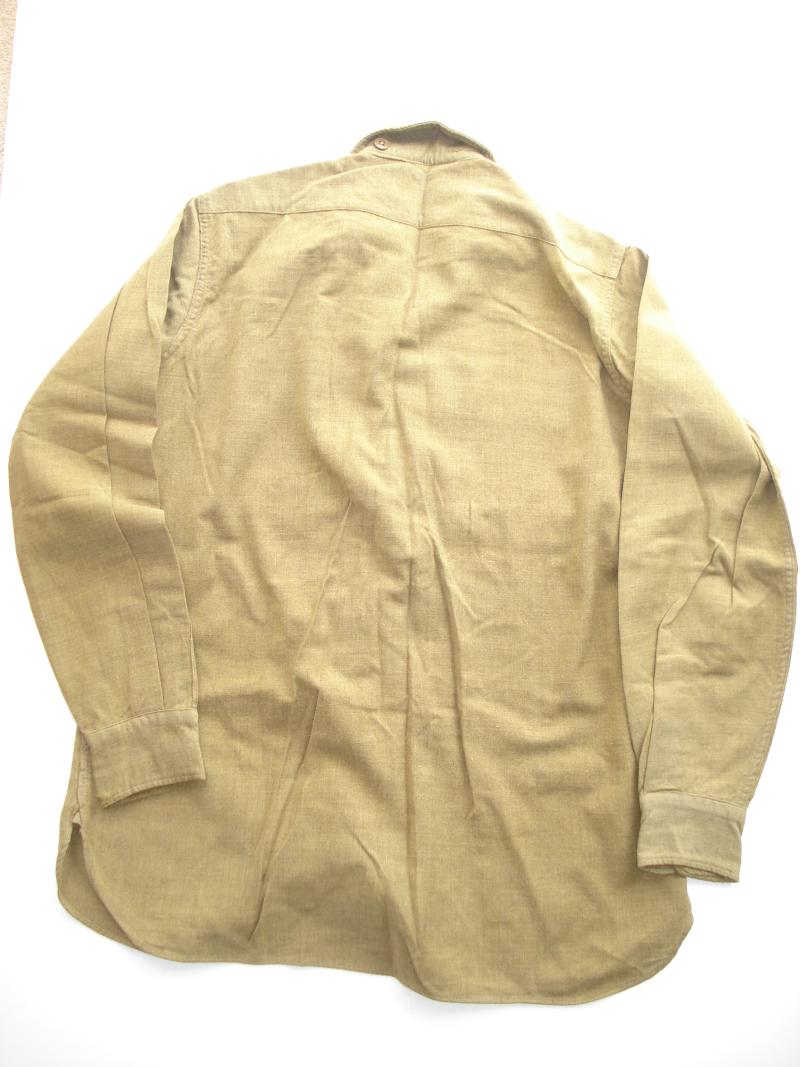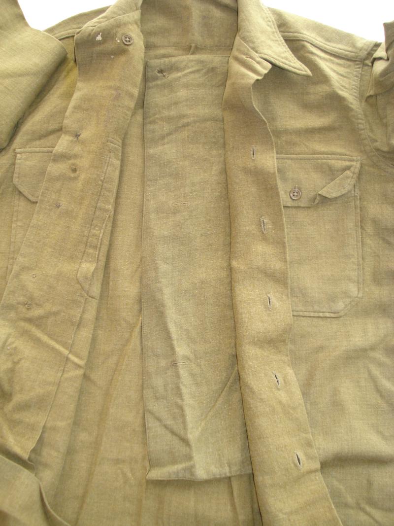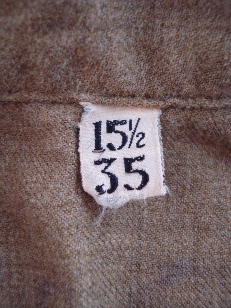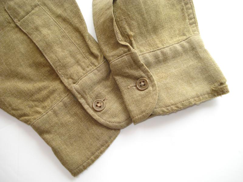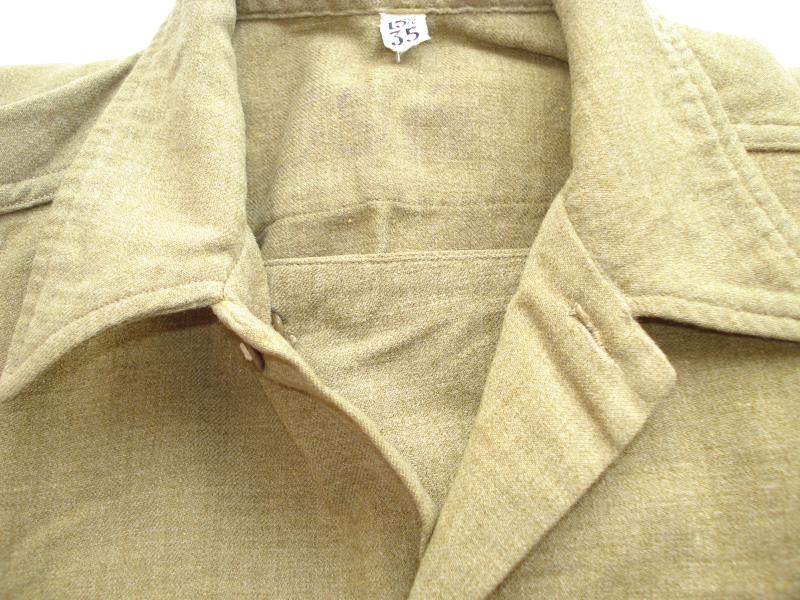 The special designation was given, as this pattern of shirt has a chest gas flap & two buttons (one absent) on the rear of the collar for attaching the anti-gas hood. Original size label to collar.