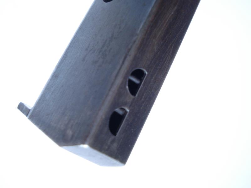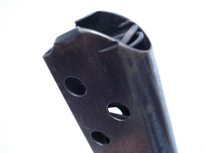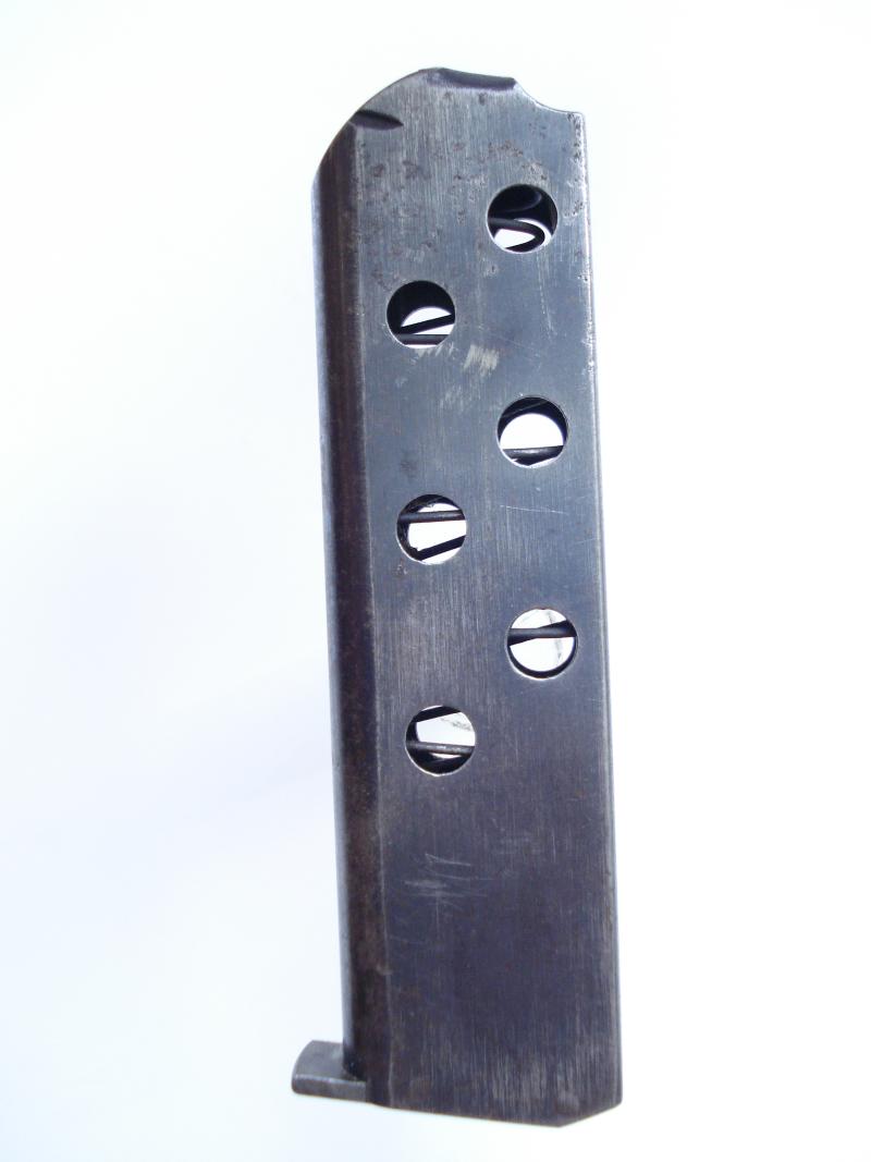 In very good condition, with strong original blue finish, no dents or pitting. Has two notches which allowed the pistol to be single loaded, holding the magazine in reserve, much like the service rifle of the day. A hard to find mag.