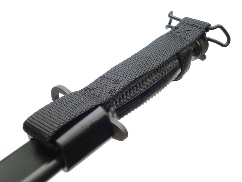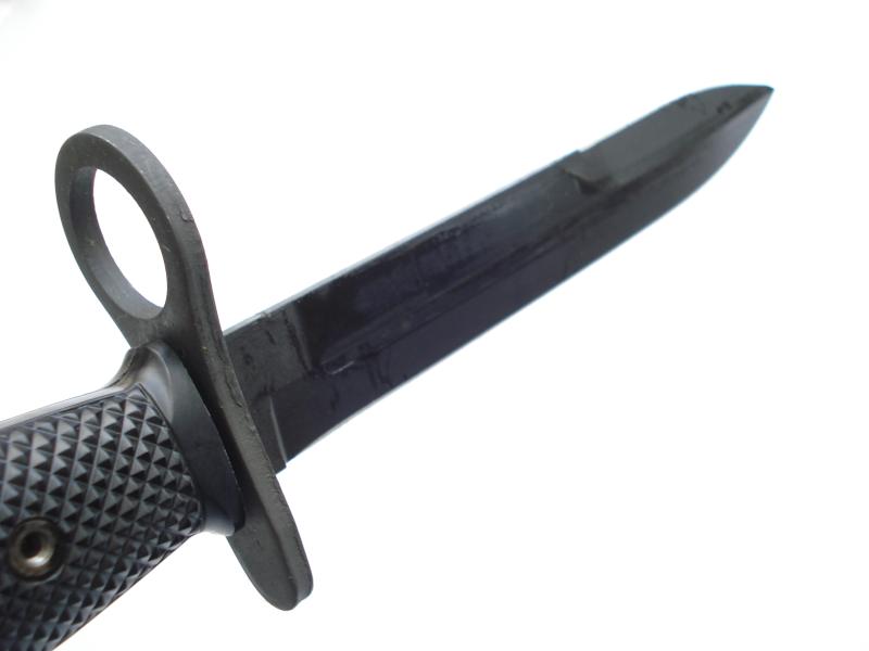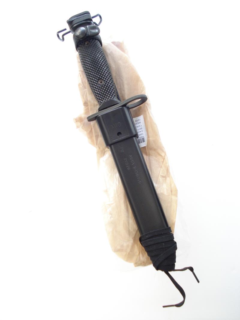U.S issue M7 bayonet for the M16/M4 with original packaging in mint, un-issued condition. Bayonet produced by Ontario. Black M10 scabbard with integral frog.