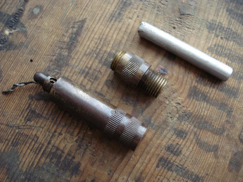 1940 dated brass ZZ-35 pull igniter & Aluminium Sprengkapseln Nr.8 as used in many mines, booby traps & demolition charges. INERT/F.F.E
