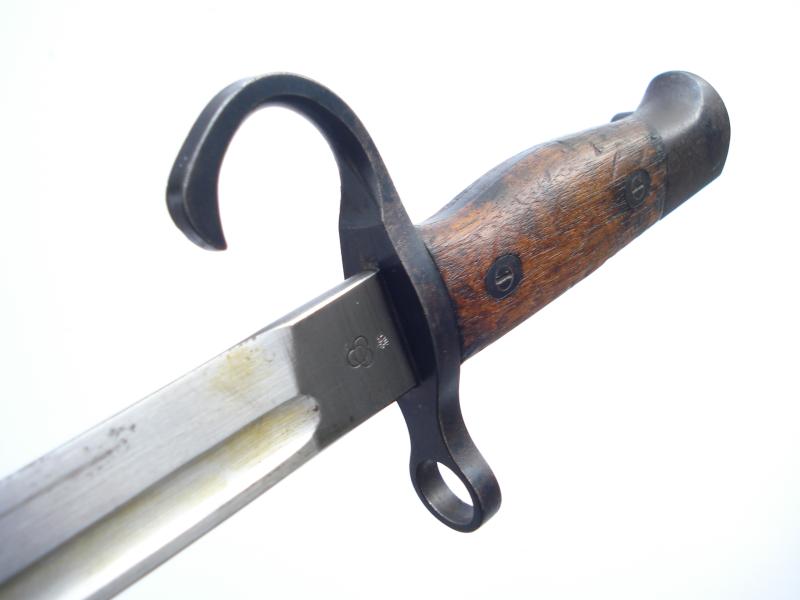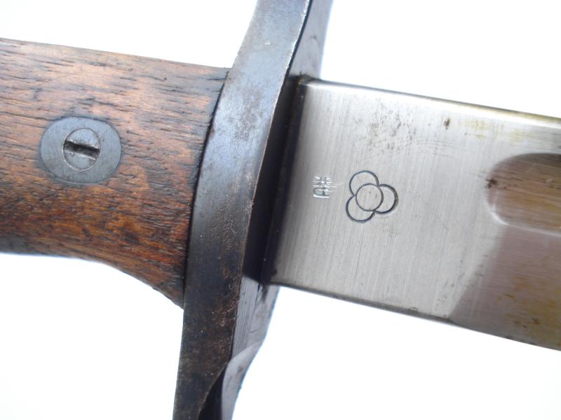 Imperial Japanese type 30 bayonet for the Arisaka service rifle. Tokyo arsenal mark with nice, crisp little inspection stamp on the ricasso.