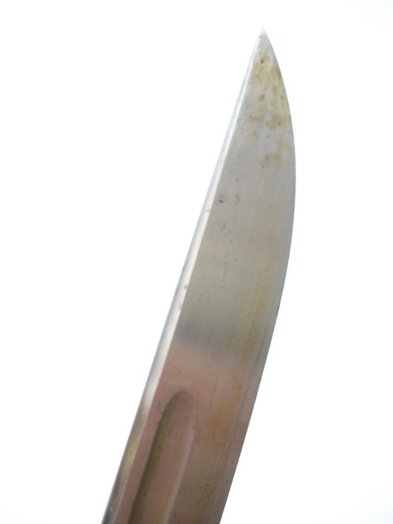Well above average example, the blade is bright & totally free of rust or edge nicks, perfect point, traces of old grease dried on to the blade. Getting hard to find these with nice blades, the Japanese army made great use of the bayonet in battle..