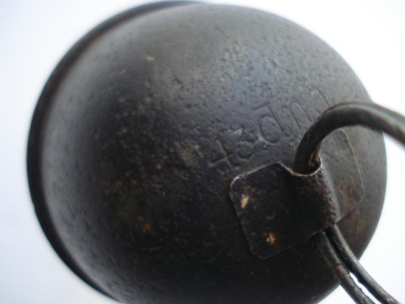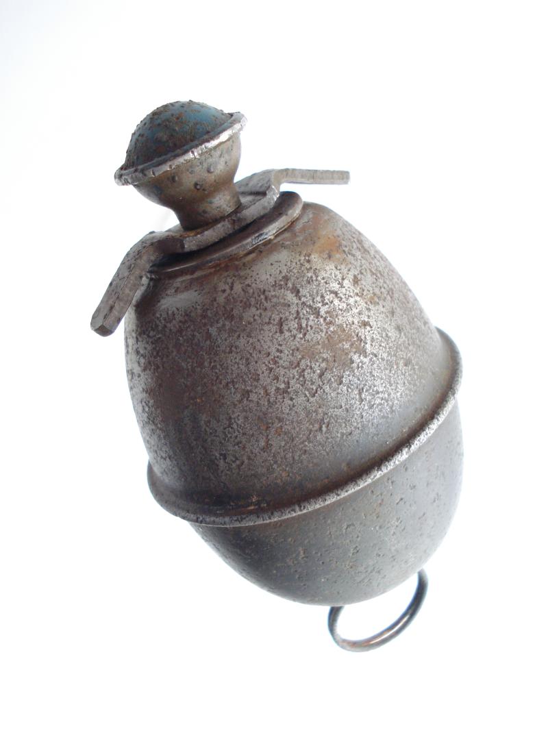 German M39 egg grenade, 2nd issue type with hanging ring. Maker coded 'dna' (W.Seibel) & dated 1943.