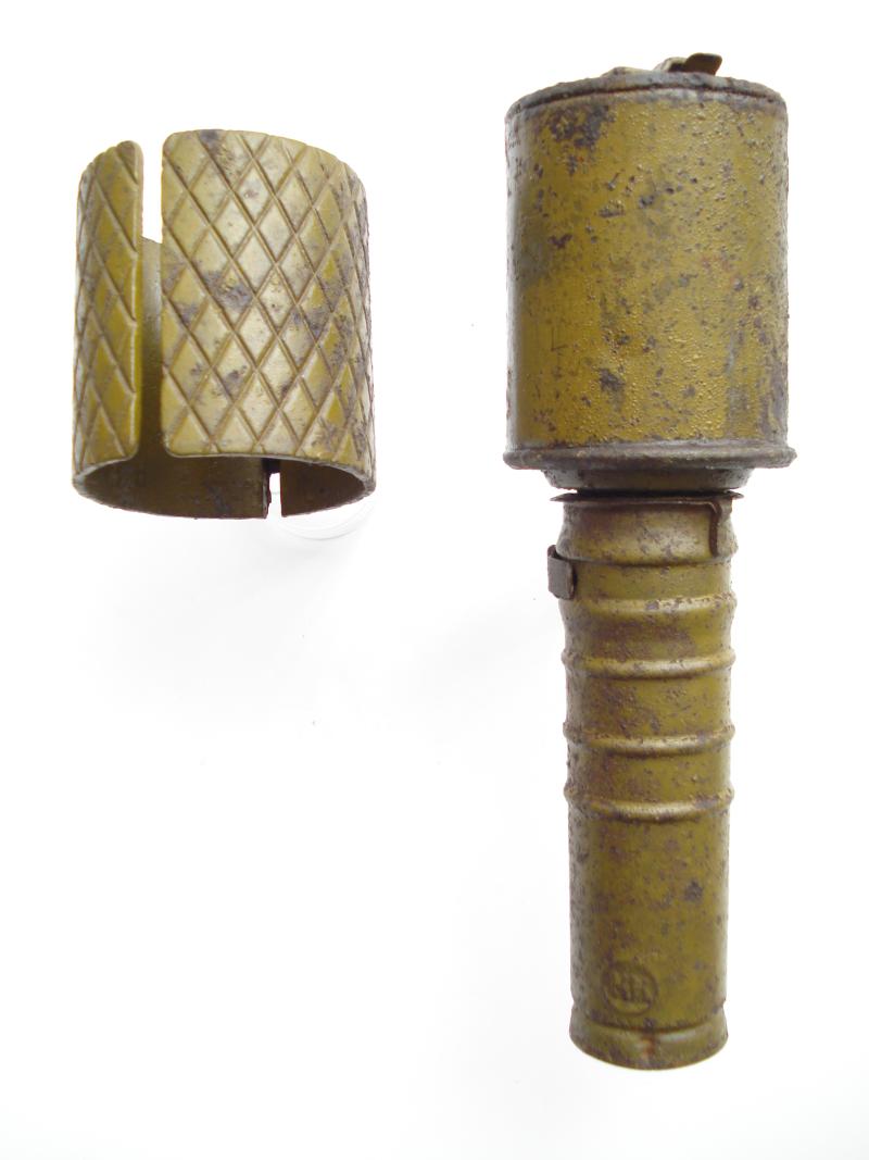 WW2 Russian RGD 33 hand grenade, complete with removable fragmentation sleeve.