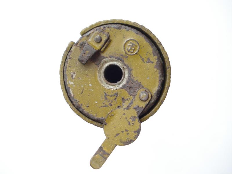 Most original paint remaining, sleeve removes, det pocket cover opens, & safety slide moves. Very good example of the classic WW2 soviet grenade.