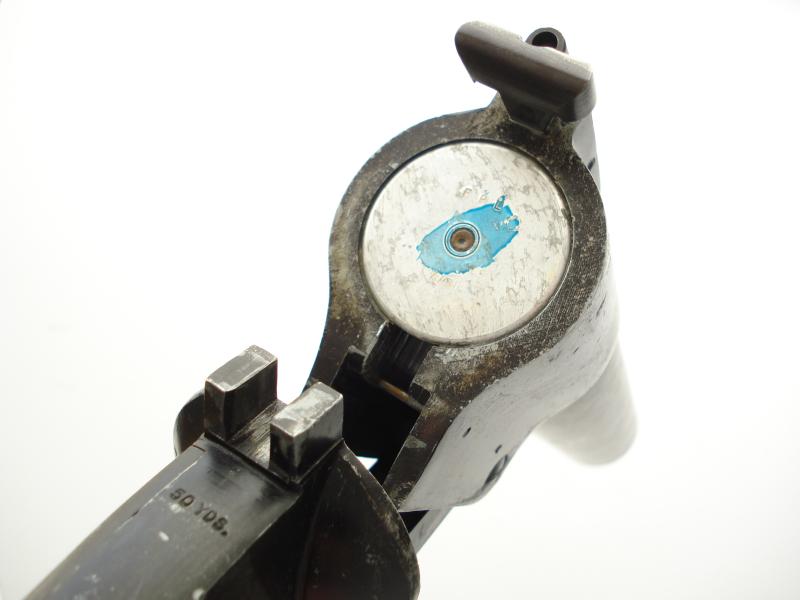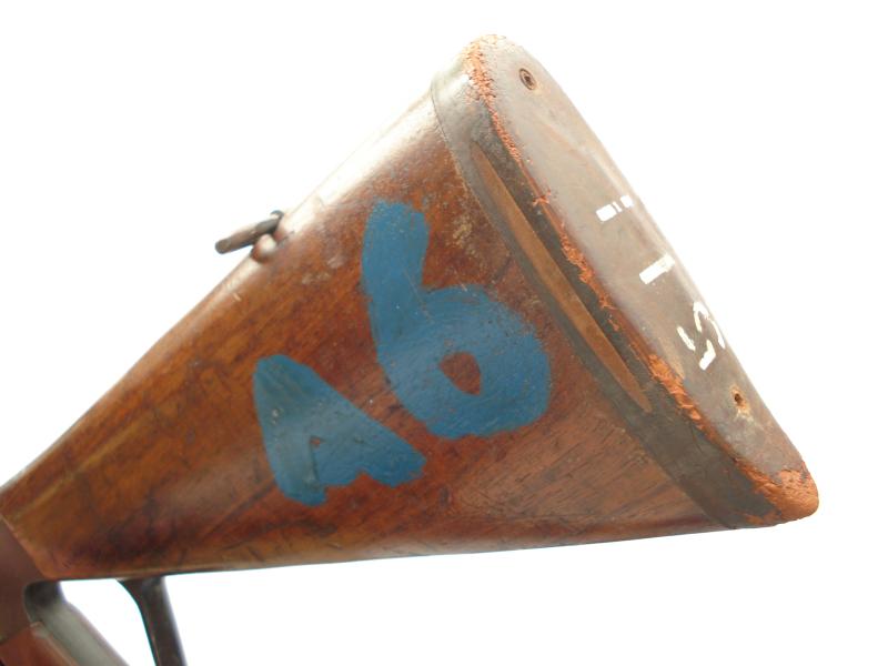 Gun is marked with various rack numbers. Cocks & dry fires, a spent case has been trimmed to fit the breech, giving the impression it is loaded & covering the ugly welded rod in the barrel.