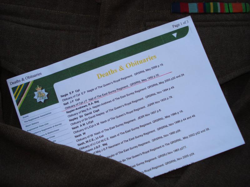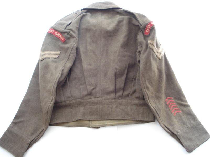 This is the B.D he would have been repatriated in, it sports East Surrey shoulder titles, Rank stripes, six service stripes, medal ribbons, (Inc Burma star)